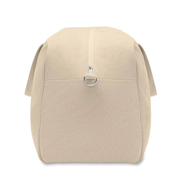 Duurzame tas van gerecyclede stoffen (60% katoen, 40% polyester) met verstelbare en afneembare katoenen schouderriem. Perfect voor reizen, sport of dagelijks gebruik.
